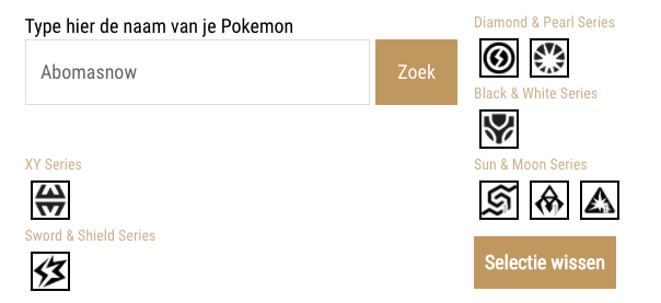 Allereerst vullen we op de pagina Pokemon kaart waarde bepalen de naam in het zoekvenster in en drukken we op Zoek:
